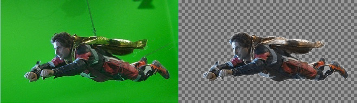 Color keying (also called chroma keying) is a special technique that removes a specific color or color range from a picture. Essentially this technique is used to replace one background with another. Color keying is applied in many fields, such as news, motion picture, photography, video games, etc. For example, you encounter color keying while watching the forecast, when a presenter appears in front of a weather map. Usually green and blue backgrounds are used for color keying, because these colors are opposite to skin tone and the distinction is very clear. Graphics Mill provides color keying implementation removing only the green range.
