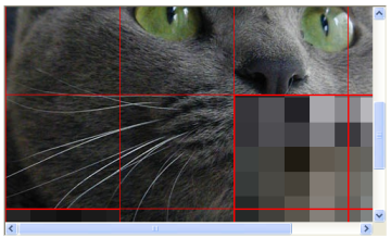 In this mode the original image is divided into square tiles. The tile size equals to TileSize property value. The control loads square fragments of the original image for corresponding tiles which are visible but not loaded yet. This load mode is looking similar to this screenshot: