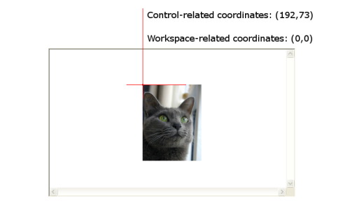 If we zoom this image in and change the alignment, its workspace-related coordinates will not be changed. Whereas its coordinates inside the control will be changed: