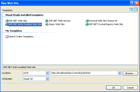 In Visual Studio 2005 create new ASP.NET AJAX-Enabled Web Site (menu File -> New Web Site...)
