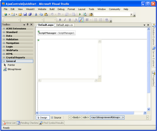 Open the necessary page (for example, Default.aspx) in the Design mode, then drag and drop the BitmapViewer control into the desired position.