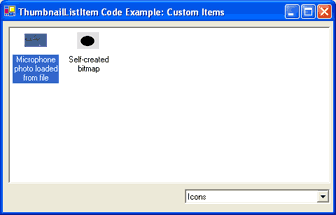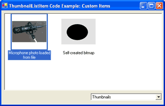 The ThumbnailListView control allows not only working with file system-based items, but also with custom items as well. For example, you can easily create list items which wrap Aurigma.GraphicsMill.Bitmap class instances and display them in the control. This topic describes how to do that.